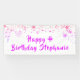 Celebrate a birthday and/or decorate for a birthday party with this pink stars themed banner ideal for celebrating any age birthday for her. The design allows you to personalise it with your custom text. CHANGES: You can change the background colour, add a speciality styled background or change the text font style, size, colour or placement by clicking CUSTOMIZE FURTHER. Contact the designer via Zazzle Chat or makeitaboutyoustore@gmail.com if you'd like this design modified, in another colour, on another product or want coordinating items.