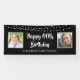 Celebrate ANY birthday and welcome party guests with this black and white banner sign featuring THEN and NOW photos of the birthday man or woman and string lights. EDITABLE COLOR: The black background colour can be changed to coordinate with your party colour scheme by clicking on the CUSTOMIZE tab. PHOTO TIP: For fastest/best results, choose a photo with the subject in the middle and/or pre-crop it to a square shape BEFORE uploading and it will fill the photo space perfectly.) Contact the designer if you'd like this design modified, on another product or would like coordinating items to complete your party ensemble.
