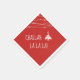For the family that celebrates both Christmas and Hanukkah, our fun Chrismukkah napkin displays a Christmas tree icon with the Star of David on top! And what better song to sing during your holiday season that "Challah La La La!"? It features white chalk-styled typography set on any colour background with twinkling string lights. #Chrismukkah #Hanukkah #Christmas #BlendedFamilies || Choose the customise tool to change the background colours to any of your choosing, if red isn't your preference.