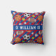 This sports throw pillow with a multi ball sports pattern is able to be any colour you want or you can keep the red/blue colorway. In the customisation area you can change the stripes and/or background colour to your nursery colour palette or your favourite team’s colours. This can be one or two colours. You can also make the sports ball pattern and star pattern on this pillow larger or smaller in the tilling area. Personalise this throw pillow with babies first or last name and a player number. This is a fun gift to give sports fans for their baby shower gifts.