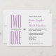 Modern style wedding invitation featuring the Bible quote from Ephesians 5:31 "two shall become one" and a small heart decoration - a beautiful message for a religious Christian or interfaith wedding celebrating love and the marriage union. Change any of the text colours on this 2 sided invitation to match your wedding theme. Displayed in grey and purple.