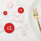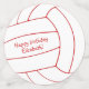 This custom volleyball birthday party confetti features the realistic image of a simple volleyball with white panels on the front of the confetti pieces - customise your text on the front and back of each confetti piece - the volleyball's seams are represented by a red background, which you can easily customise to ANY colour (for each piece, if you want!) and then customise the text colour to match - by katz_d_zynes
