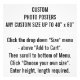 Any Custom Size Photo Posters to Personalise. Choose your own size. Customisable dimensions. Maximum 40" x 60". Minimum 4" x 4". DESIGN YOUR OWN: Fully customisable Photo Poster Print Enlargements. Add your own words, text, image and personalise your photo posters. CHOOSE YOUR OWN CUSTOM SIZE PHOTO POSTER: Choose a custom size from 4" x 4" up to 40" x 60". Just click the drop down "Size" menu above "Add to Cart". Scroll to bottom of Menu. Then click "Choose your own size". Enter height and length required. Create your own customisable, personalised photo poster print gifts and products for a birthday, for Christmas, for marketing and promotional use, or simply for your home or yourself. Add your own text, name, words, pattern, motif, monogram (monogramme), image or personal design. Various standard and custom frame options available for your photo prints posters.