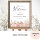 Welcome your guests with this beautiful floral welcome sign! Ideal for showers, birthdays, and any special occasion as you can add any text you like to the event section. Design with a beautiful watercolor floral border in blush, pink, and champagne, and small foliage details in faux rose gold foil. Welcome in elegant modern handwritten calligraphy. Part of our "Elegance in Pink, Blush and Rose Gold Floral" collection with many coordinating items available.