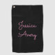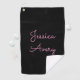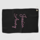 Any Name | Cool Editable Pink Script on Black Golf Towel