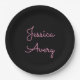 Any Name | Cool Editable Pink Script on Black Paper Plate