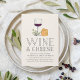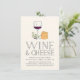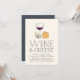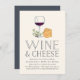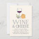 Invite guests for wine and cheese with our rustic elegant party invitations, featuring a wine glass and cheese wedge illustration and "wine and cheese" in handwritten style lettering. Add your party details beneath using the template fields provided, and customise this invitation for any occasion, from birthdays to rehearsal dinners to housewarming parties!