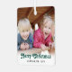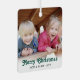 Celebrate the simple joys of the holidays with a custom 2 photo retro typography square metal ornament. Pictures and all text on this template are easy to customise and can be different or the same on front and back. It can include any wording, such as Merry Christmas, Happy Holidays, Best Friends, kids & family names, etc. (IMAGE PLACEMENT TIP: An easy way to position a photo exactly how you want is to crop it before uploading to the Zazzle website.) The festive green, white and black and design features groovy vintage typography, simple modern minimalist names & year, and two photos of your choice. This unique keepsake adds a stylish touch to Xmas home decorations. Merry Christmas!