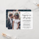 Invite family and friends to a simply elegant reception-only wedding celebration with stylish modern 2 photo "Happily Ever After Party" invitations. All wording is simple to personalise for a 1st anniversary, vow renewal ceremony, sequel wedding, post-elopement or dinner party. Customise it to include any details of your choice, such as marriage date, dress code, rsvp, website, etc. (IMAGE PLACEMENT TIP: An easy way to centre a photo exactly how you want is to crop it before uploading to the Zazzle website.) The modern minimalist black and white design features two pictures of the newlywed couple, trendy handwritten script calligraphy, and chic typewriter style typography.Whether you eloped, had a smaller downsized minimony or micro wedding, or your special day celebration had to be rescheduled due to a covid pandemic related postponement, the happily ever after party can still get started. Congratulations to the bride and groom!