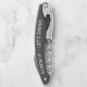 SCREW IT - LET'S DRINK! Funny Drinking Quote Wine Corkscrew / Beer Bottle Opener with Knife. Simple modern grey and white design with text that can be customised or deleted. Personalised text can be different or the same on each side. Use a favourite quote, name, important date, or add a note such as Happy Birthday, Congratulations, Happy Anniversary, Happy New Year, etc. Fun host or hostess gift for a party or as a wedding favour for guests, family or bridal party.