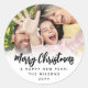 Any Text Trendy Script Christmas Photo Black White Classic Round Sticker