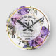 Any Wedding Gold Frame Purple Roses Anniversary Round Clock