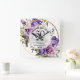 Any Wedding Gold Frame Purple Roses Anniversary Square Wall Clock