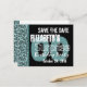 Here's a trendy save the date design for a SURPRISE birthday party, a Teal or Aqua Geometric Pattern with Black accents. Modern and elegant!