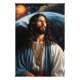 Jesus Christ is among the beautiful mystical celestial bodies. The universe colours are strong and vibrant.