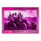 Photography of great Native American Apache warrior chief Geronimo with top hat ,driving an elegant vintage car in black white,pink,fuchsia,purple colours, taken on June 11, 1905 , re-elaborated by Bulgan Lumini. inside of the card ,magic symbol of sacred Morning Star of Pawnee tribe bearer of well-being .