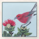 Apapane & Lehua Blossom Hawaii Nature Illustration Glass Coaster