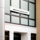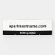 You can edit the text to show a custom message such as the website for your apartment community. Additional text is near the bottom of the banner so that you can provide additional information. (Shown: Now Leasing) All text can be edited or deleted. The banner is black and whilte.