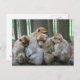 Adorable photograph of a family of apes hugging for warmth or comfort.