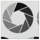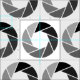 A pattern made up of camera lens aperture symbols. The design can can be further customised and motifs can be arranged in a variety of different ways.