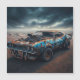 Blue Classic 1969 Chevy Camaro with blower and spots of rust out in the desert during apocalypse.