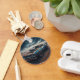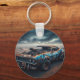 Blue Classic 1969 Chevy Camaro with blower and spots of rust out in the desert during apocalypse.