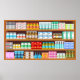 Decorate your pharmacy, clinic, or classroom with this high-quality medical illustration poster. This detailed graphic showcases an organized dispensary shelf filled with medicine bottles and laboratory equipment, making it a perfect addition to a professional apothecary or science-themed office. The crisp colors and educational aesthetic serve as great wall art for graduating pharmacy students or as a unique piece of decor for a neighborhood drugstore.