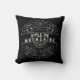 Stylish throw pillow for moonshine lovers features fictitious Appalachian Apple Pie moonshine label in white/light grey on black background