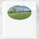 A rich green landscape, with a field of tall grass edged with trees under a deep blue sky full of clouds. A gnarled dead tree stands by itself in the middle of the field.