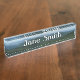 The nameplate looked exactly as pictured, I was very happy with this product! It also arrived promptly after placing my order! I would definitely recommend this product! The printing turned out exactly as I designed it, very pleased!