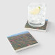 The coasters are gorgeous, a quality feel and heavy weight. They look like a precious archeological find. A rustic stone juxtaposed with a modern floral black and white print. I like the way the print goes slightly imperfect on the cut stone edges giving them a kind-of natural beauty.