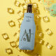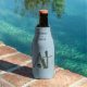 The letters "AT" in olive green are the foundation for the design on this bottle cooler. Incorporated into the lettering are some of the natural attractions of the Appalachian Trail including the silhouette of a wild pony, wildflowers, the silhouette of a hiker and an extra peak on the "A" to resemble mountains. The phrase "The Appalachian Trail" running along the inside of the wider leg of the "A" completes the design.
