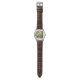 I was uncertain about the size being too small but it looks good. The case looks like aluminum (not shiny) and the time is easy to see. I changed the band because the leather doesn't go with my lifestyle.a. Exactly what I expected, nice yellow. It grabs peoples attention.