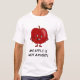 Annoy an apple and it won't let you forget it. Never mind kawaii (cute), this apple is not amused and somebody is going to have to answer to him. You can customise the slogan on this funny fruit t-shirt.
