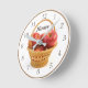 This beautiful apple wall clock features a stunning photo of an apple basket on a white background with a brown border. Photography created by award-winning photographer Maria Jeffs.