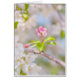 Closeup view of an apple tree in full bloom. Single pink apple flower on a twig against and amidst other flowers of soft pink colour and light blue sky. The impression of purity and beauty. The painting of the Nature. Textured photograpy.