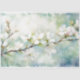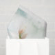 This tissue paper design features a branch of white, apple blossom on a blue green base of subtle bokeh.