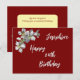 Apple Blossom on Deep Red Named and Aged Birthday Postcard