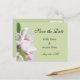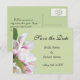 apple blossom in light green back ground save the date postcard. for spring, summer weddings, parties. floral photo art.