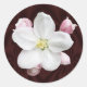 A delicate apple blossom with buds over a silky, colour coordinated background.