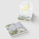 The coasters are gorgeous, a quality feel and heavy weight. They look like a precious archeological find. A rustic stone juxtaposed with a modern floral black and white print. I like the way the print goes slightly imperfect on the cut stone edges giving them a kind-of natural beauty.