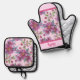 Apple Blossoms and Pink Polka Dots Oven Mitt & Pot Holder Set
