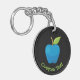 Blue apple with leaf icon. Custom background colour. Custom text on both sides.