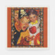 Halloween paper napkins that show a funny mid-century image of kids bobbing for apples at a Halloween costume party. One boy is watching his tooth fly off in the apple.