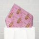 A cute pink tissue paper with the pattern of 3 candy apples , a couple of hearts and some typography . Perfect for any occasion .