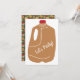 These party invitations are perfect for fall themed events. The front of the invitation features a simple style illustration of a gallon jug of apple cider in red and brown with your own message in white script lettering. The back of the invites has all your party details and a fun pattern of apples and apple treats against a dark green background.