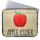 Cute apple painting against a wooden background. The text says “Apple Cider” in a fun rustic font.