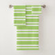 Sweet apple green and white, this fresh striped pattern looks great in a home, beach house, apartment or dorm bathroom. The alternating thick and thin stripes add a sophisticated touch. Get sets in different colours for different people to know whose towel is whose! Great housewarming gift for a new apartment to brighten up the inevitable white walls.