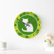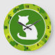 Apple Green Camo; White Cat Large Clock