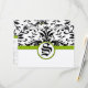 Vintage Modern Black and White Floral Damask Patterns with Apple Green Trim Wedding Invitations. Perfect for Rococo Baroque, Mediaeval Renaissance, Art Deco Art Nouveau, Roaring 20s Gatsby, Victorian Weddings or Elegant Farmhouse Wedding Themes Venues.